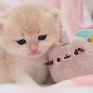 Puff Bear is available for reserve! She has the puffiest coat and is so sweet. She loves your attention and affection and will melt your heart with her soft meows. She is a total lovebug! Her coloring is beautiful (blue golden chinchilla), peachy color on her back areas and a soft cream color belly. That's why we named her Puff (creme puff) =)